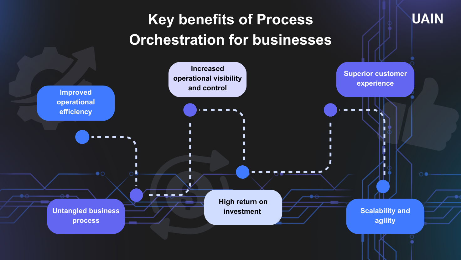 Take the step towards efficient process orchestration with UAIN! With expertise in intelligent automation and process orchestration, we can help advance your business and achieve measurable ROI. Contact us today!