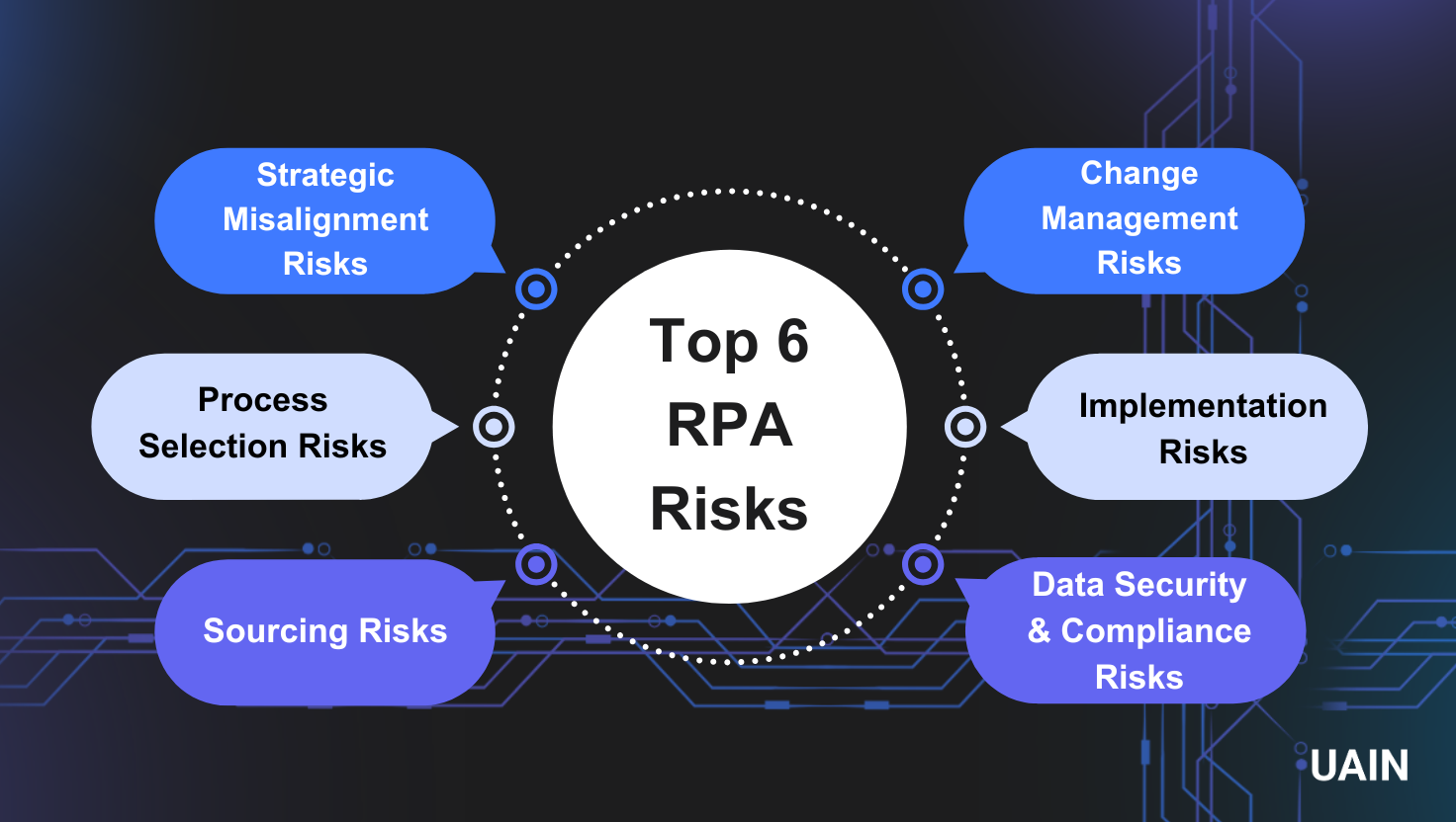 At UAIN we understand that RPA implementation comes with its risks, but our experts know how to address them and guide your success. Here’s how we do it: